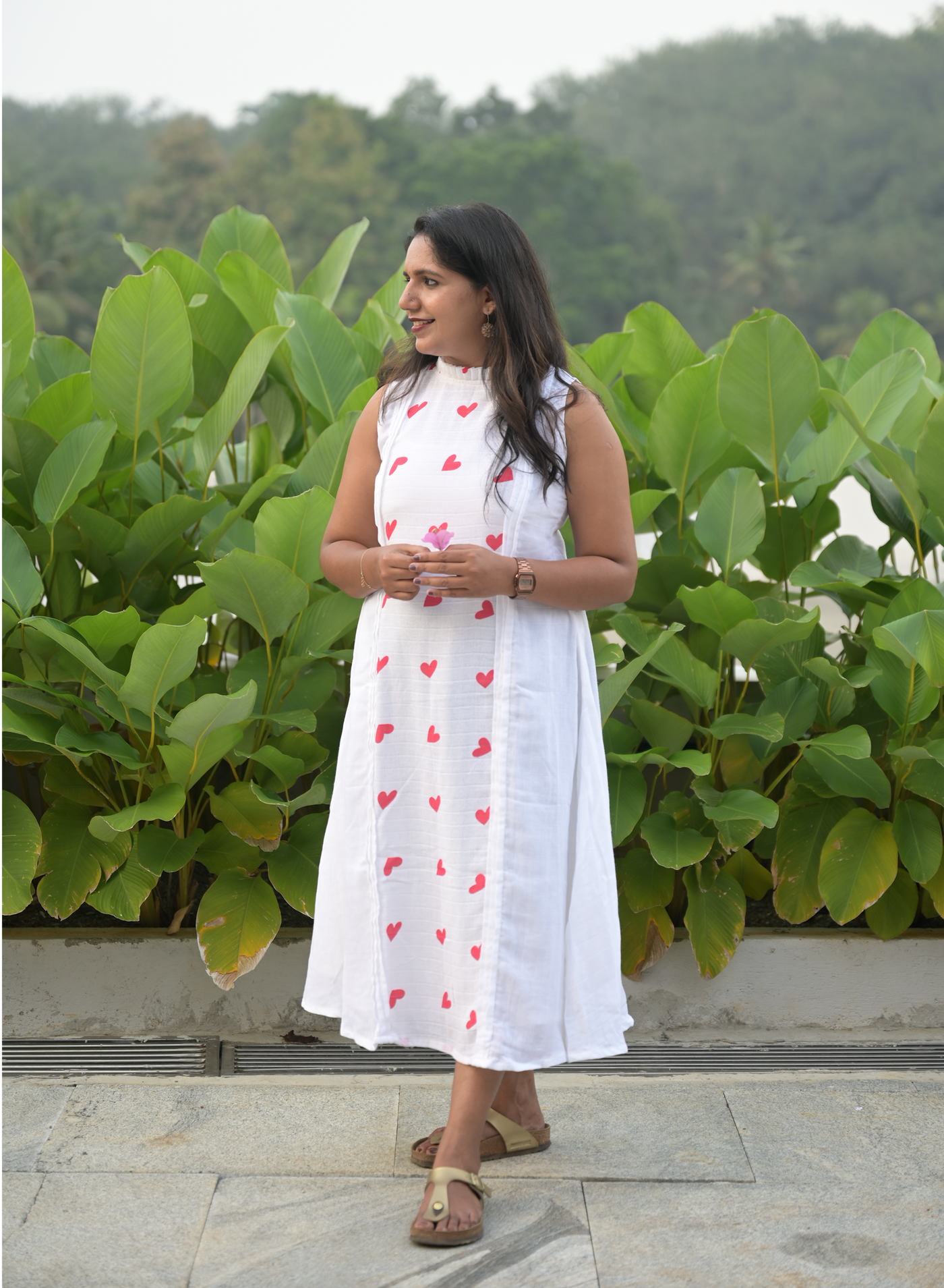 Fabric Muslin cotton heart printed